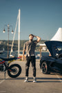 The model wears size L / 34