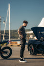 Be Defiant Relax Fit is a 5-pocket jeans made in Bulgaria / EU from hand-distressed and repaired medium shadow black denim for an authentic vintage appearance.