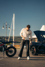 Reborn Raw 80's 5 Pocket are made in Bulgaria / EU from Vintage Black Italian Denim and designed in a relaxed leg with a slight taper. The five-pocket style is detailed with an antique brass hardware in a shadow clack color.