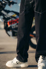 Reborn Raw Black Contrast Jeans are cut to a loose fit with a low waist, baggy legs and extended length. Black Contrast Jeans are made in Bulgaria / EU from Italian Denim with contrast stitching to highlight the design of the model.
