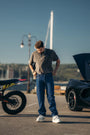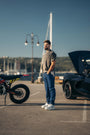Reborn Raw Loose Fit Jeans are 5-pocket straight jeans, made in Bulgaria / EU from Italian Denim. The Jeans are cut into a loose fit with wide leg and long length. Featuring an eco stonewash on rigid medium indigo denim.
